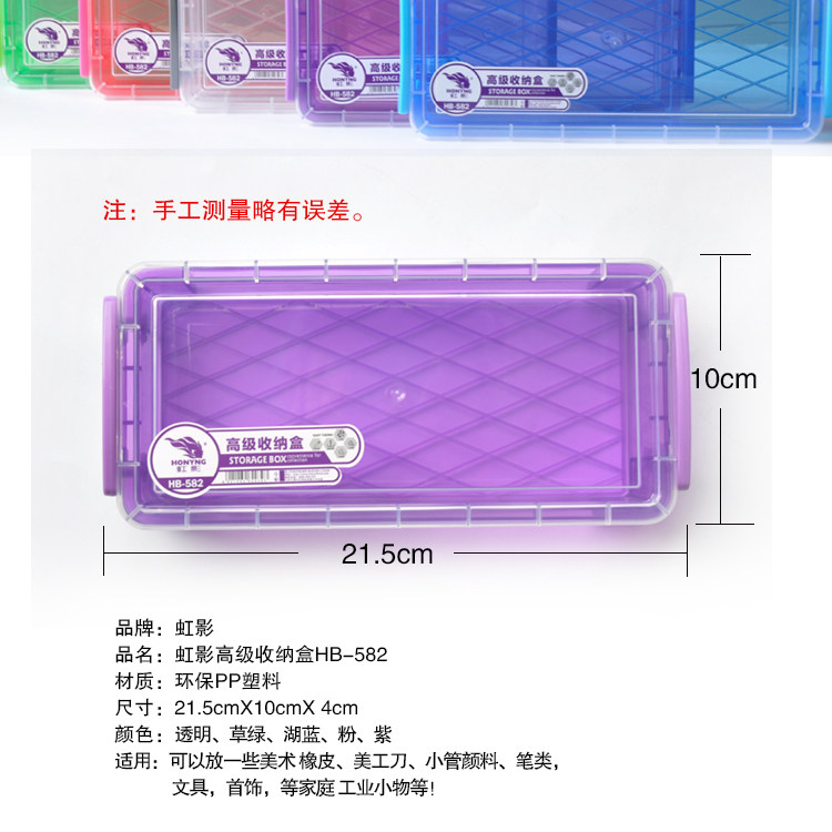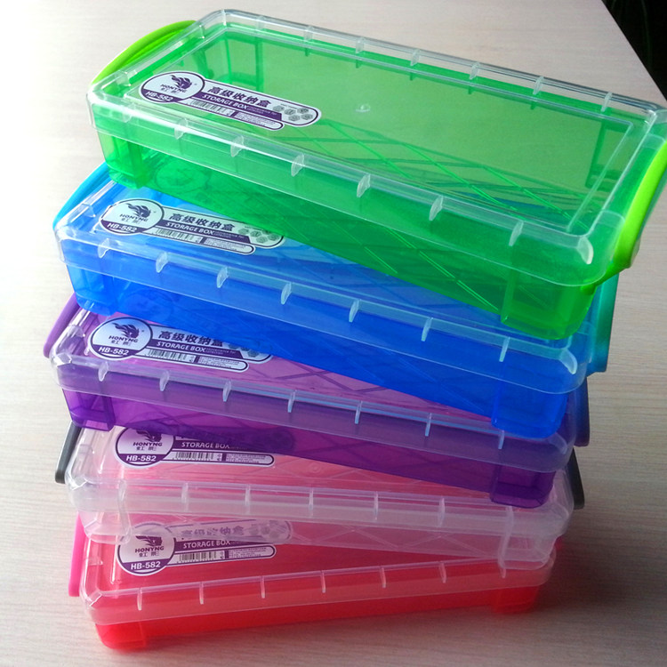 Hongying R582 transparent plastic box stationery box sketch pencil box art tool storage box