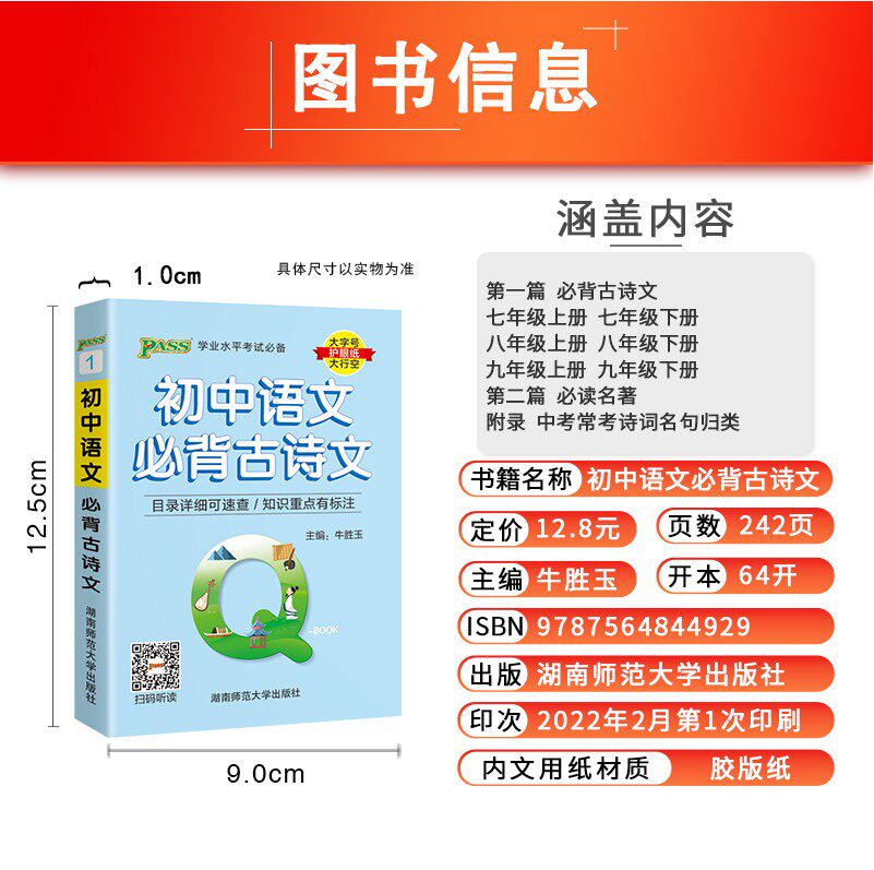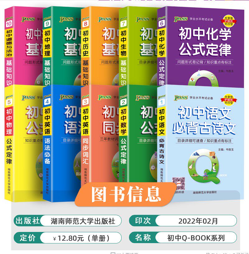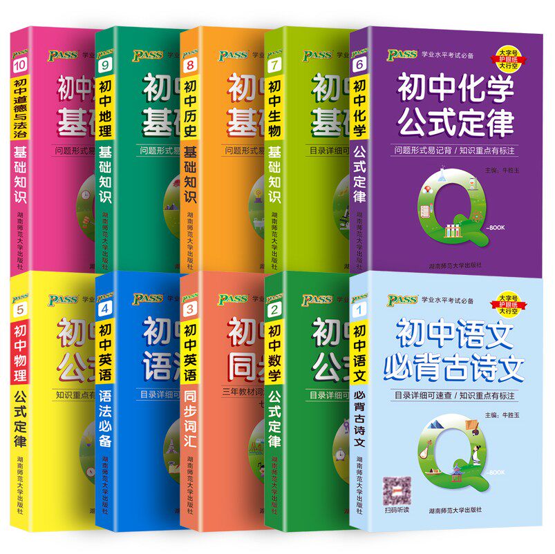 Q-BOOK Junior School 10 Chinese must-be ancient poetry mathematics English physics and chemical students in physical and chemical physics of English Pass Green Card School Examination 789 QBOOK first 123