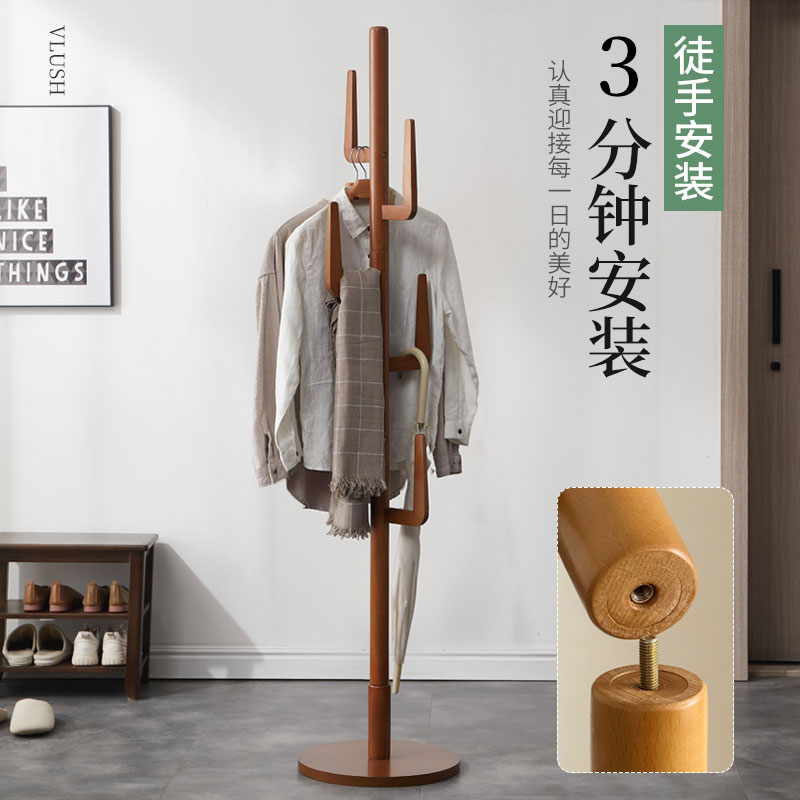 Coat rack Solid wood floor-to-ceiling hanger Bedroom hanging hanger simple modern home vertical single-pole hanging clothes rack