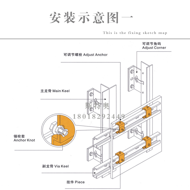 Screw-in back bolt expansion screw 304 stainless steel back bolt screw back bolt bolt marble tile dry hanging