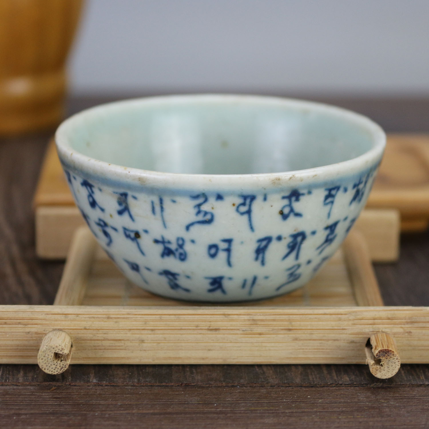 Daming Wanli Blue and White Sanskrit Kung Fu Cup Tea Cup Antique Porcelain Antique Doing Old Folk Collection Ancient Porcelain Capital Garden