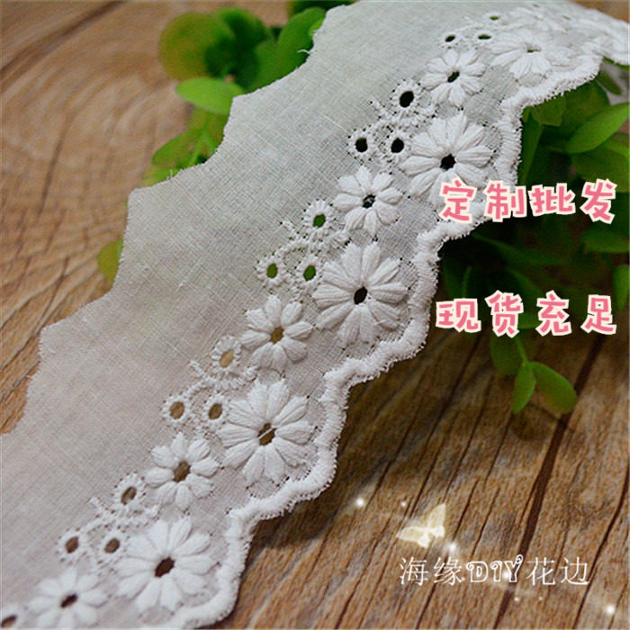 High-quality beige apricot cotton cloth embroidery chrysanthemum lace accessories handmade diy clothing accessories width 5cm