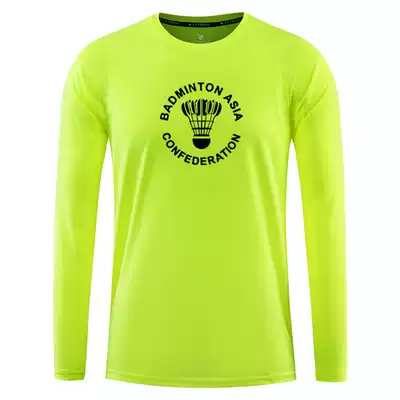 Long-sleeved mesh quick-dry Asian Badminton Sports T-shirt Badminton Top Round Collar Team Uniform Match Polyester Fiber