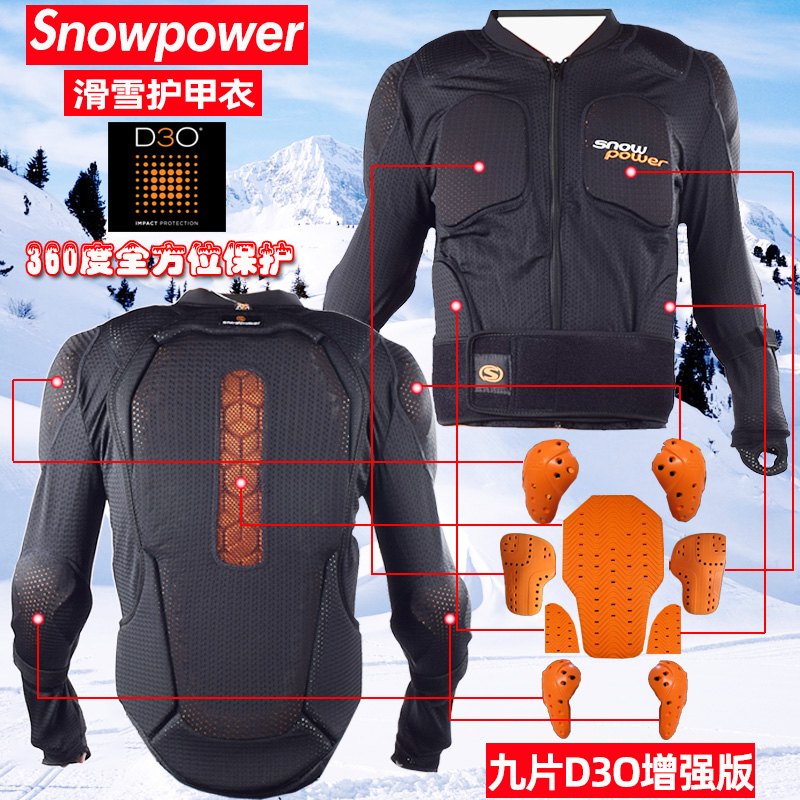 "Snow power" D3O protection with single double board ski professional protective clothing for men and women adult children's back and fall