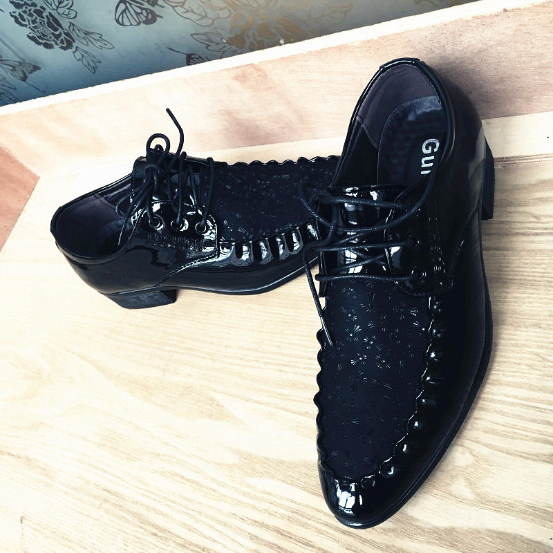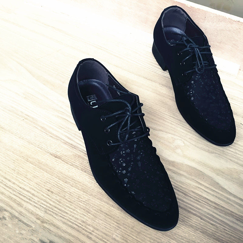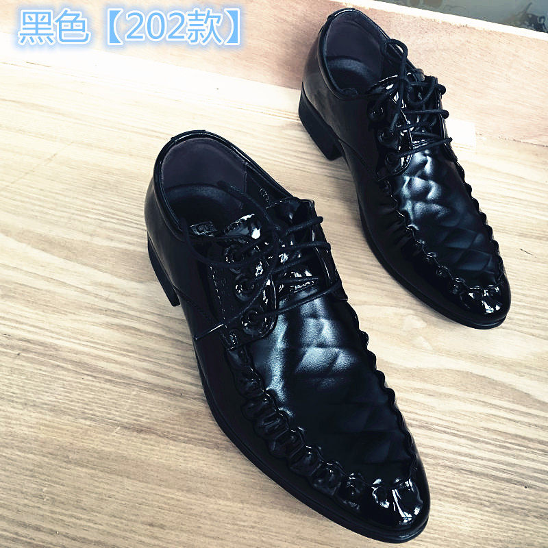 2022 autumn men's daily casual leather shoes British pointed hair stylist Korean version black heightening wedding shoes men's shoes
