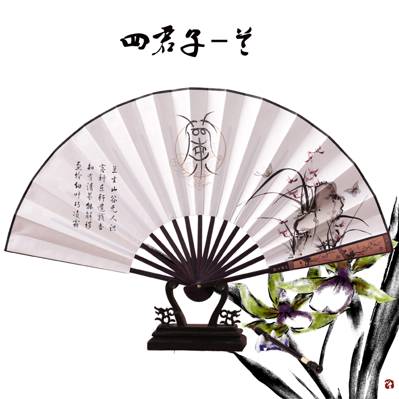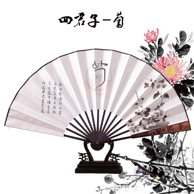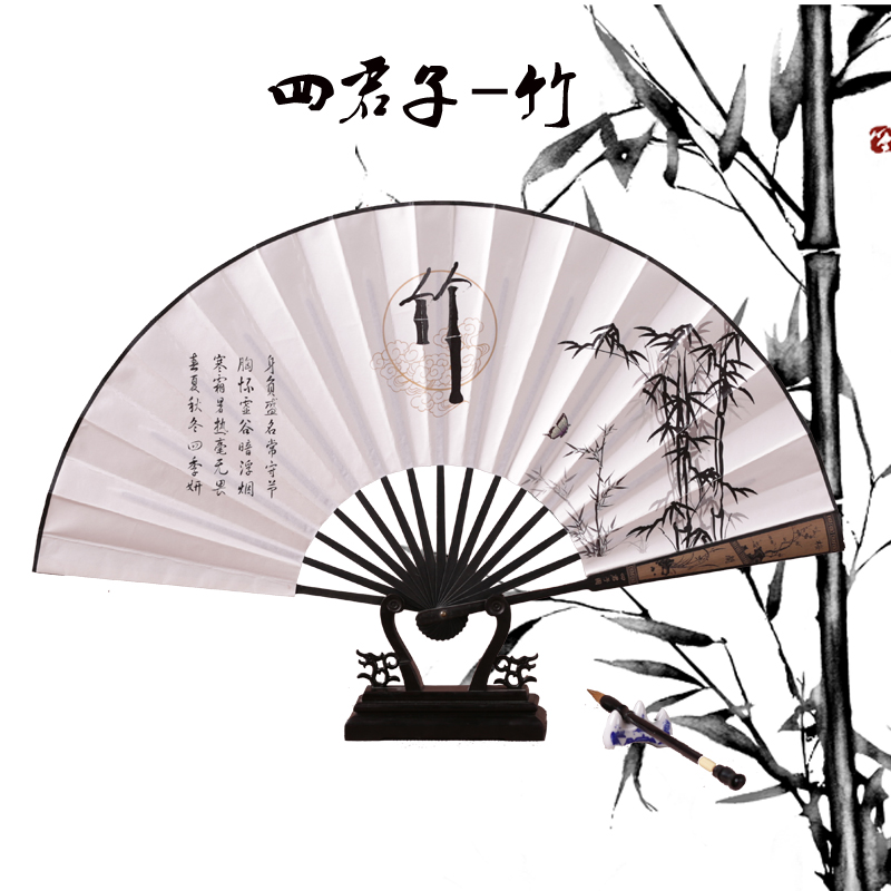 Fan folding fan male rice paper fan Chinese style calligraphy and play antique folding big fan plum orchid bamboo chrysanthemum full set