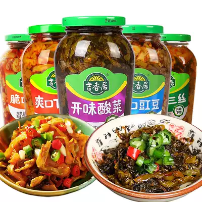 Sichuan Jixiangju flavored sauerkraut refreshing meals Crispy vegetable core Cowpea 350g*3 bottles of kimchi mustard bottles