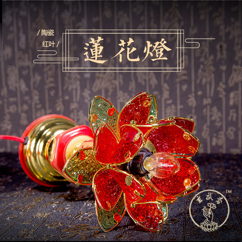 Large Red Leaf Bodhisattva Lotus Lamp Rich and Auspicious Lotus Lantern Ceramics Lotus Lamp Buddha for the lamp Changming lamp for the Buddha lamp