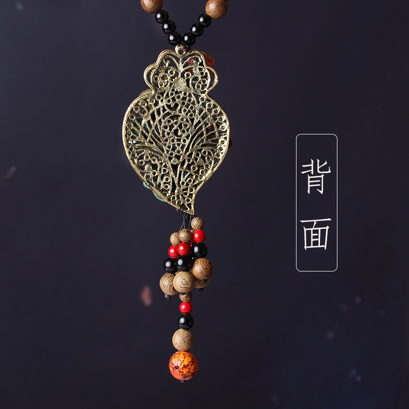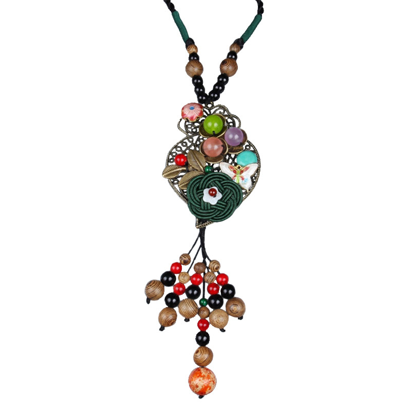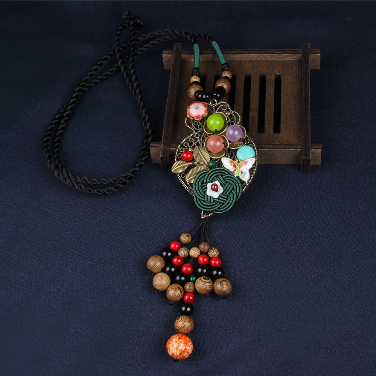 Vintage necklace long version sweater accessories Chinese knot chicken wing wood pendant Lanyard Ethnic style female spring and summer charm