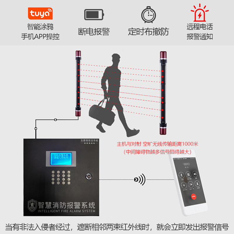 Four Beam Full Wireless Solar Outdoor Fence Home Infrared Siren Shop Theft to Shooter