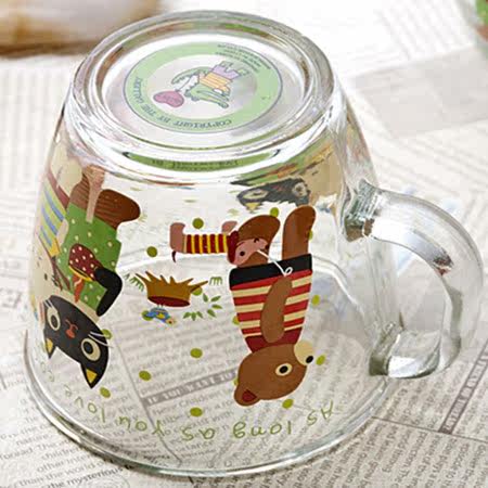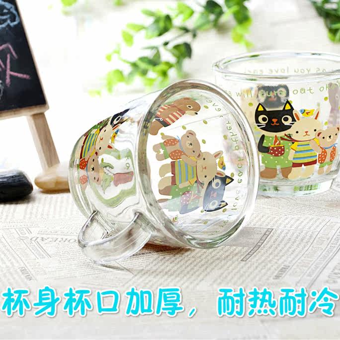 Cute Cartoon Glass Cup Children's Milk Cup With Handle Coffee Cup Tea Cup Transparent Mark Cup