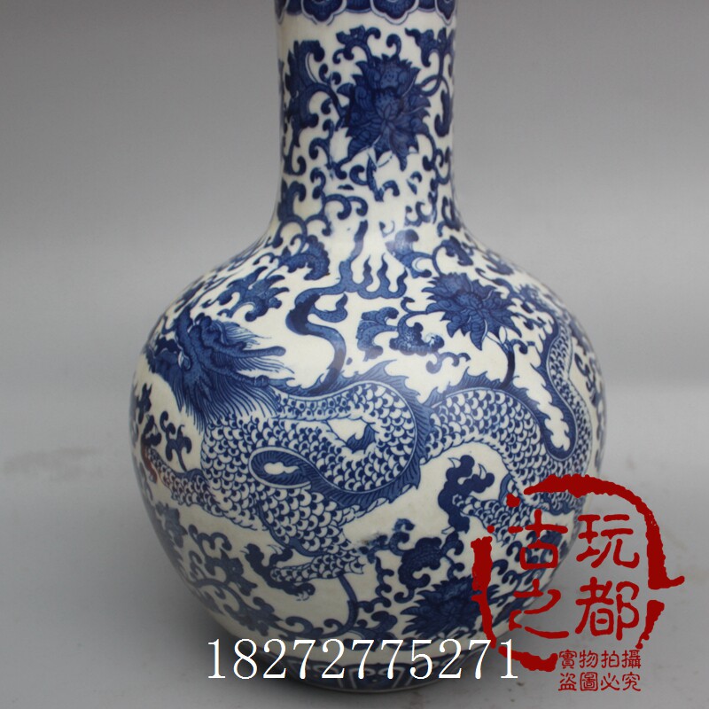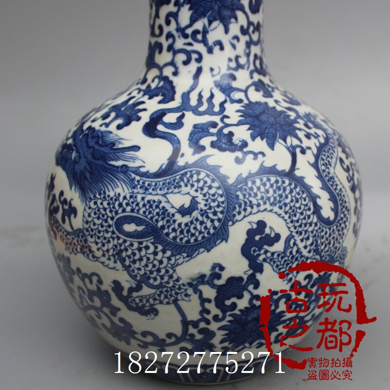 Ancient Play Boutique Collection Jingdezhen Ceramics Ming Qingqing Qing Flower Porcelain Ware Qinghua Double Dragon Drama Pearl Vase Home Decoration