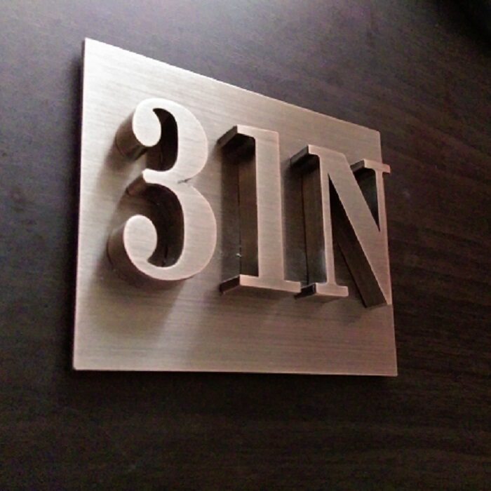 Customized advertising words Antique stainless steel door plate hotel room yard beauty door plate steel brown factory customization