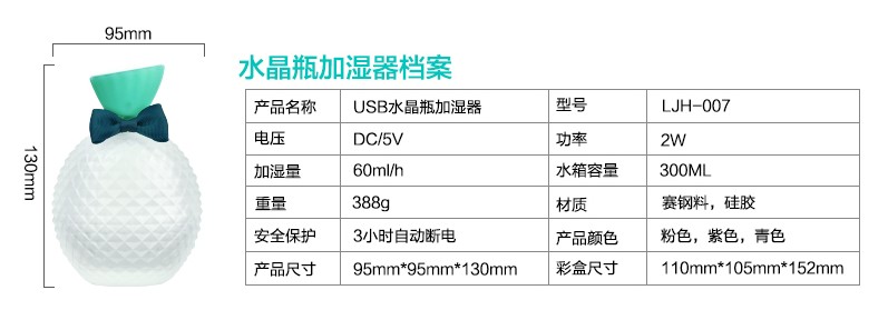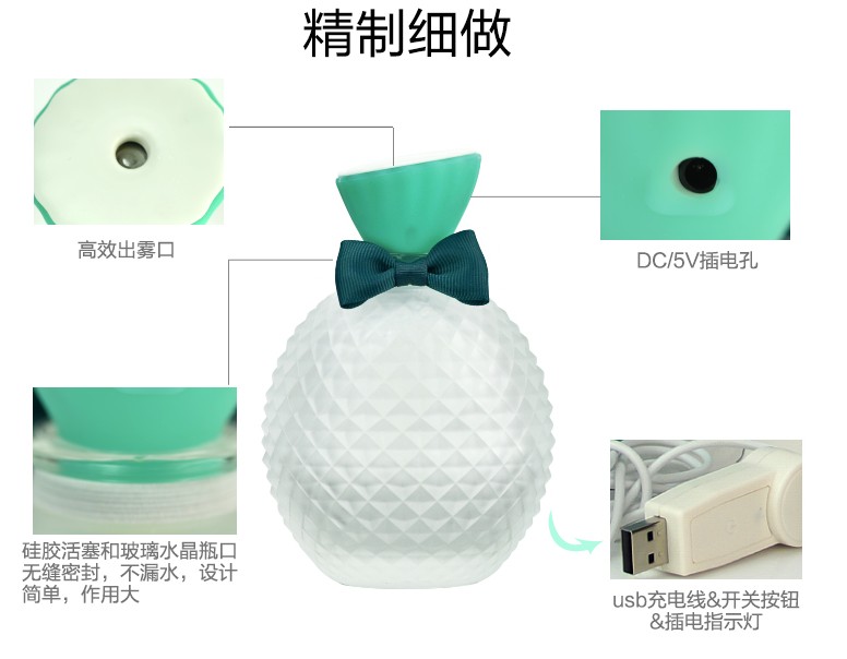 Green Crystal Bottle Humidifiers 1 3 m USB Wire Purple Crystal Bottle Humidifiers 1 3 m USB Wire Pink Crystal Bottle Humidifiers 1 3 m USB Line