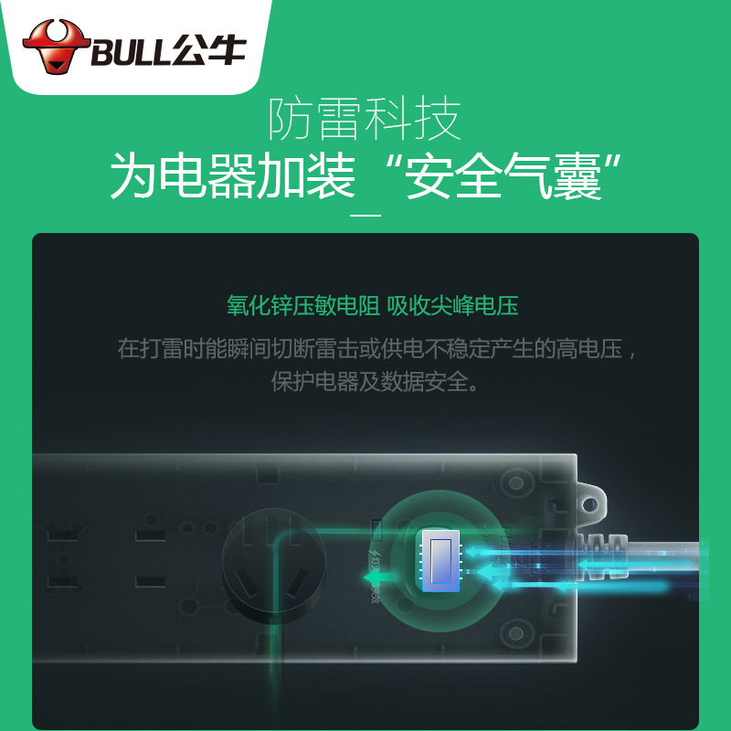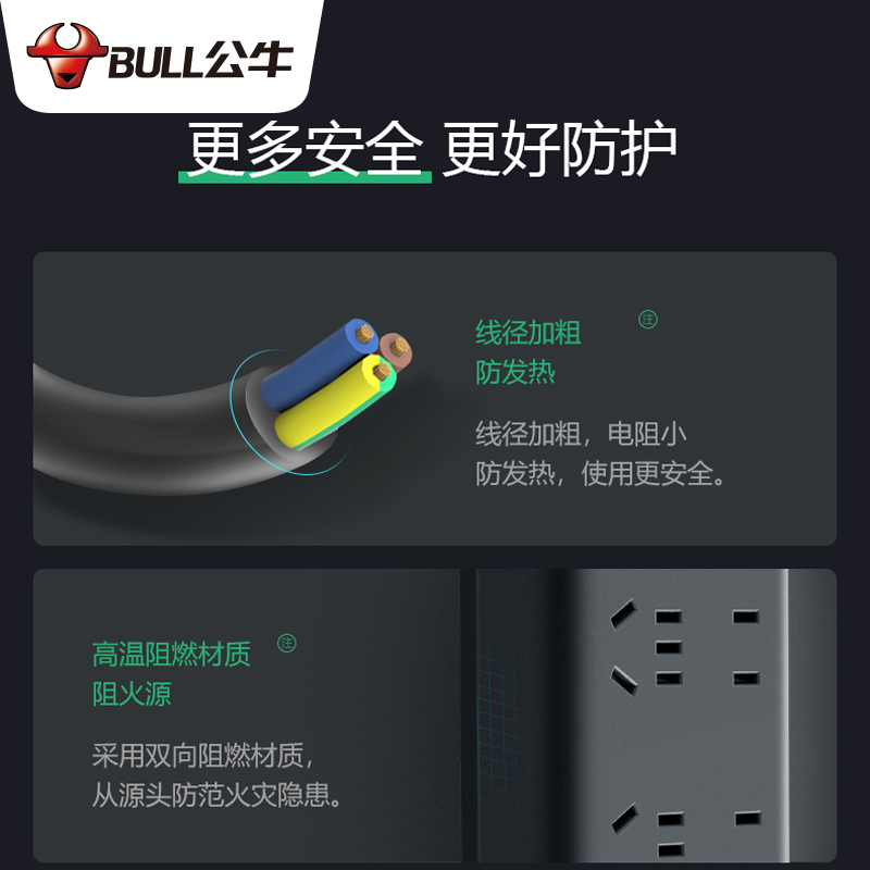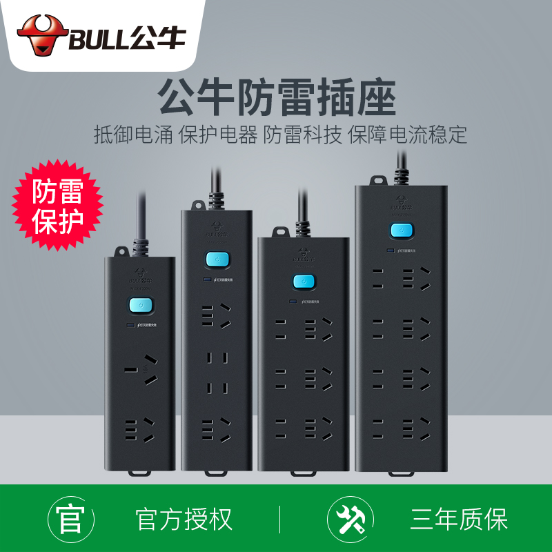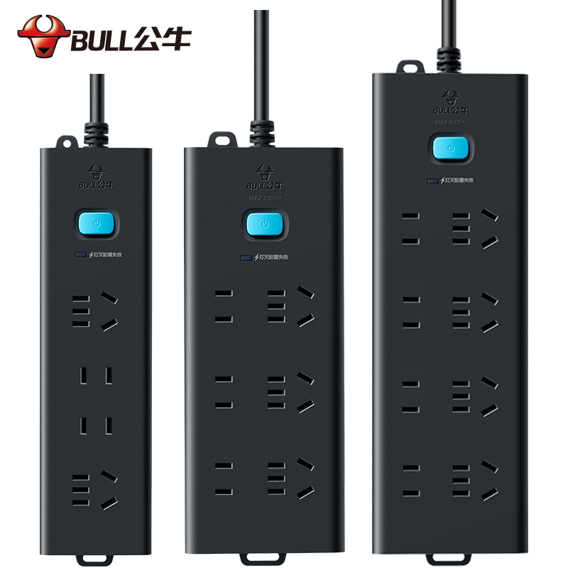 Bull Power Socket Board Double Lightning Protection Inserted Platoon With Switch Porous Plugboard Multifunction Extension Cord 3 m