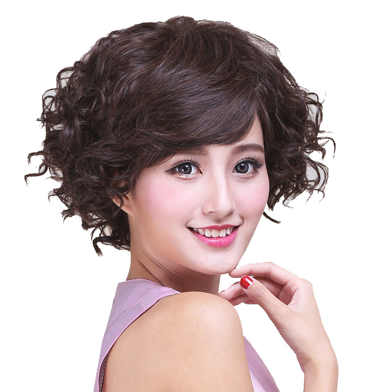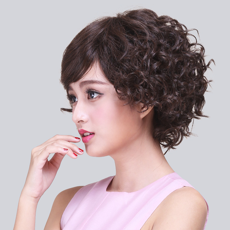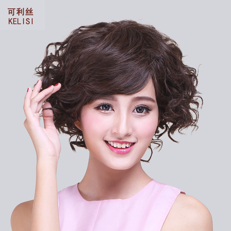 Liveless new real hair wig woman short curly hair slanted sea medium long curly hair stylish fake headgear qipao C10