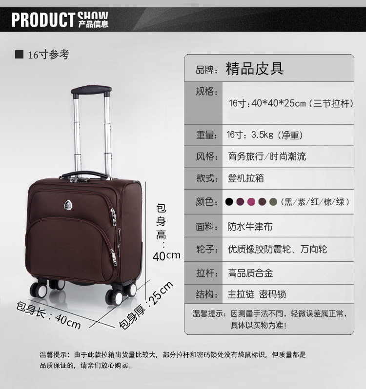 Business travel suitcase waterproof Oxford cloth universal plane wheel boarding box square trolley case 16 inch