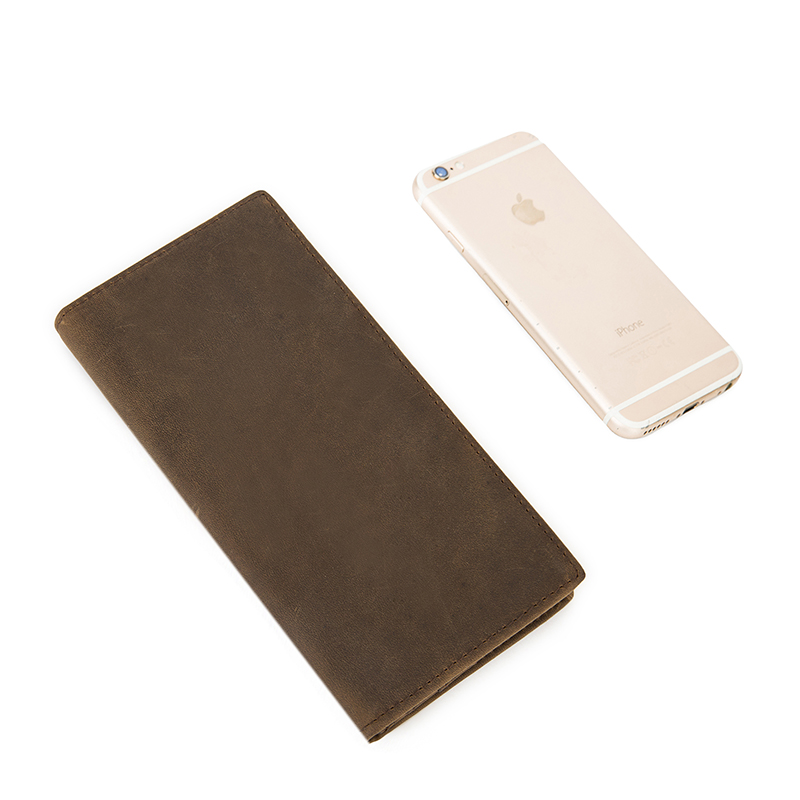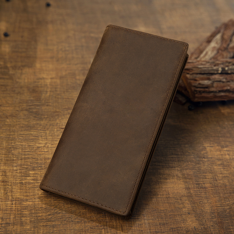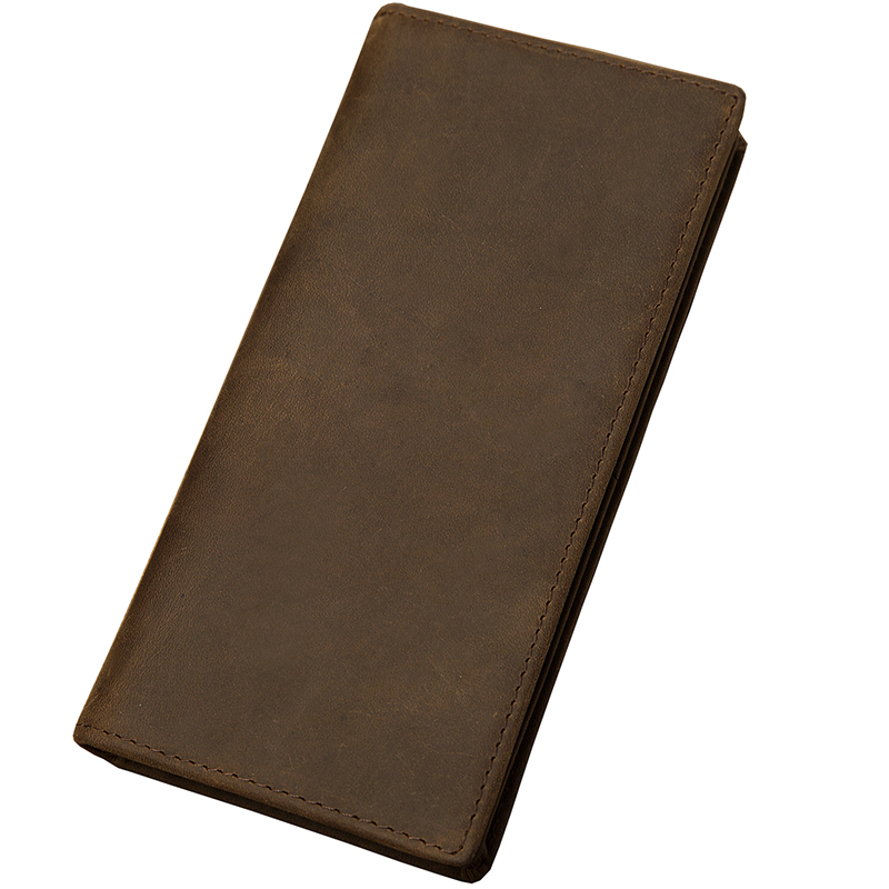 Handmade genuine leather men's wallet ultra-thin long version cow leather multi-clamping leather clamp two-fold crazy mappie minimalist retro men's bag
