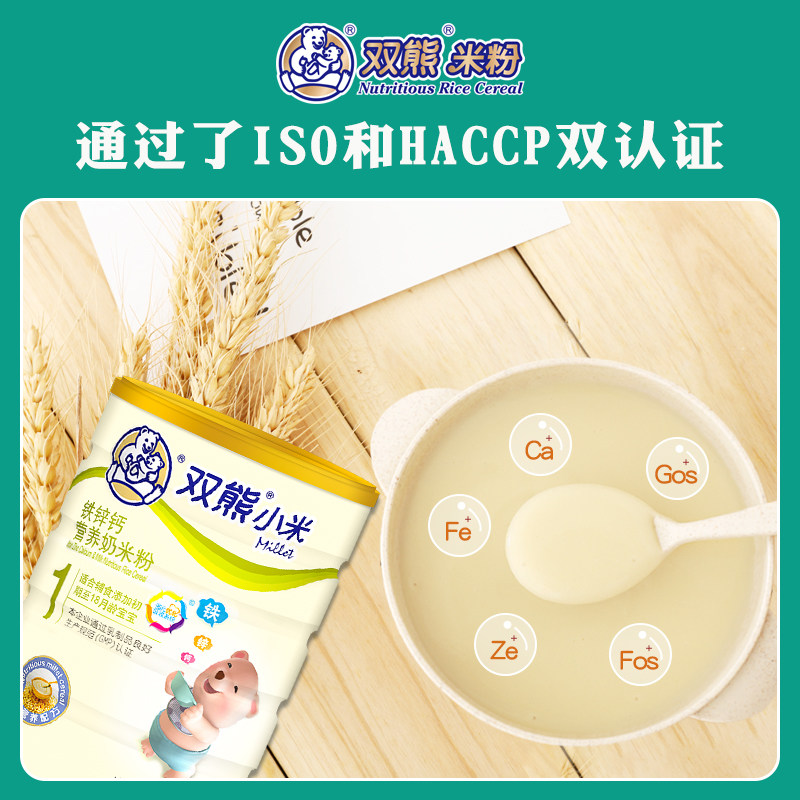 Double Bear Small Rice Flour Baby 1 Section Iron Calcium Fruit And Vegetable Baby Nutrition Sub Food 2 Paragraphs Rice Burnt 6-36 Months 3 Paragraphs 508 gr