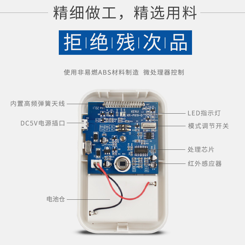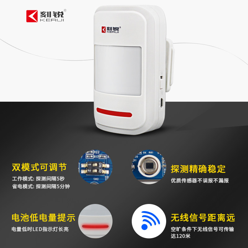Engraved 433 Frequency Wireless upscale wide-angle infrared detector sensor siren KR-P819 monitor