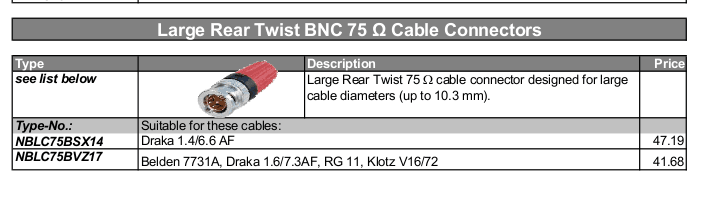 NEUTRIK Newchuchuk NBLC75BVZ17 Baitong Belden high-definition coaxial line 7731A with BNC joint