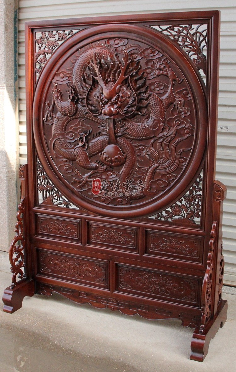 East Yang Wood Carving Solid Wood Floor Screen Standing Screen Standing screen Chinese style Xuanguan partition single-dragon puke Xuanguan Partition-Taobao