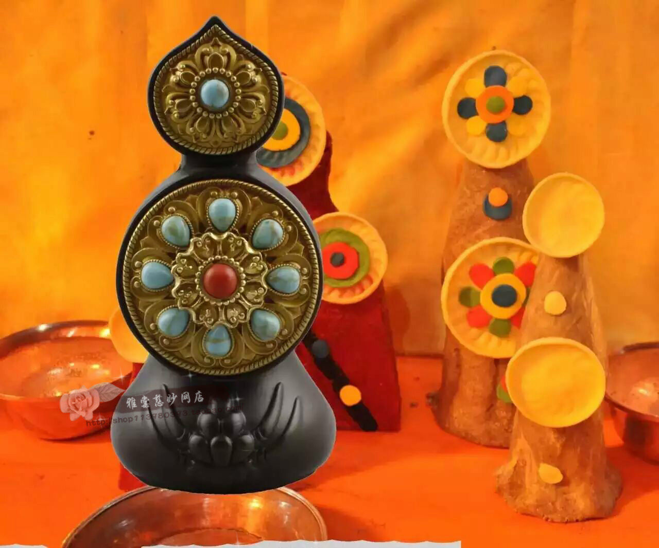 Exquisite pure copper floral with 8 for floral fruit ghee flower margarine inlaid with colorful Pearl Honey Buddha home ornament