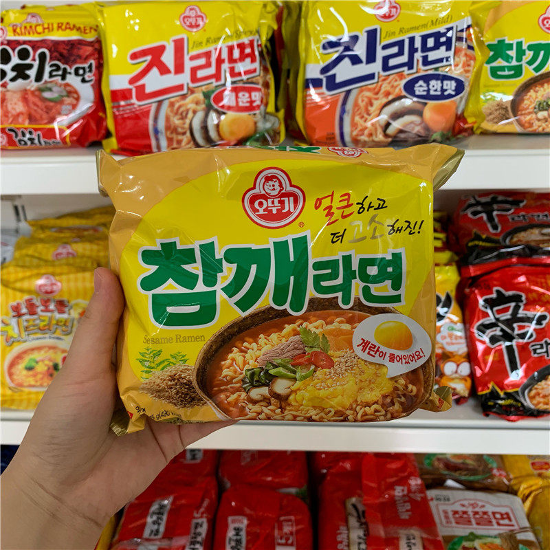 South Korea does not pour the elegant sesame noodle 115G yellow bag packed with strength roads egg bubble and noodle noodle
