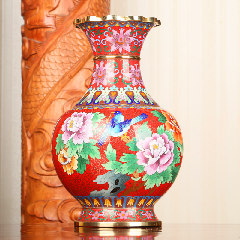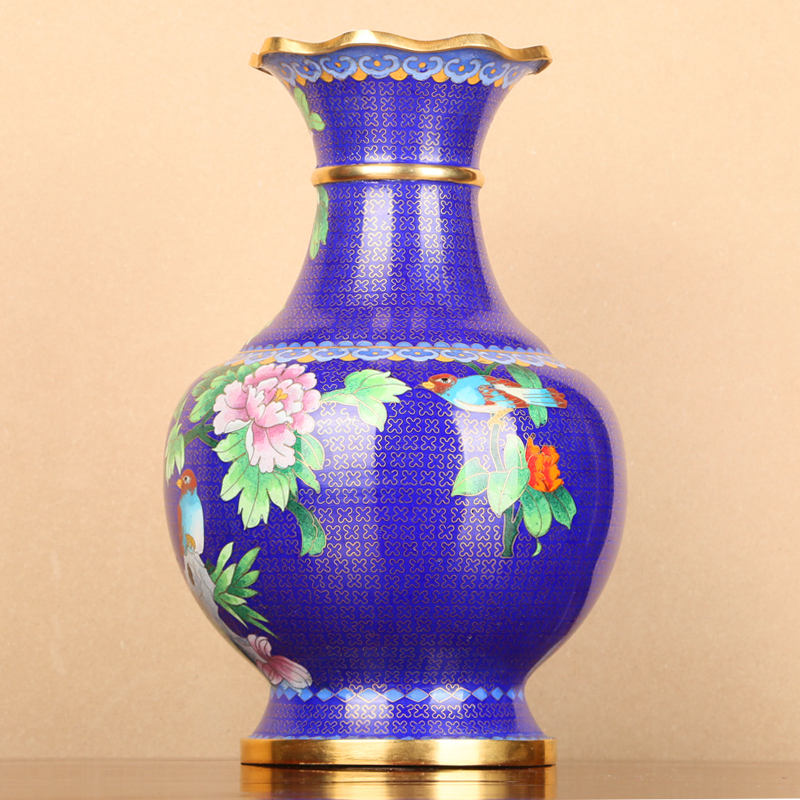 Jing Tai Blue Vase Swing Piece Beijing Gift 12 Inch Flower Mouth Bottle Foreign Gift Business Gift Bronze Tire Pinch enamel