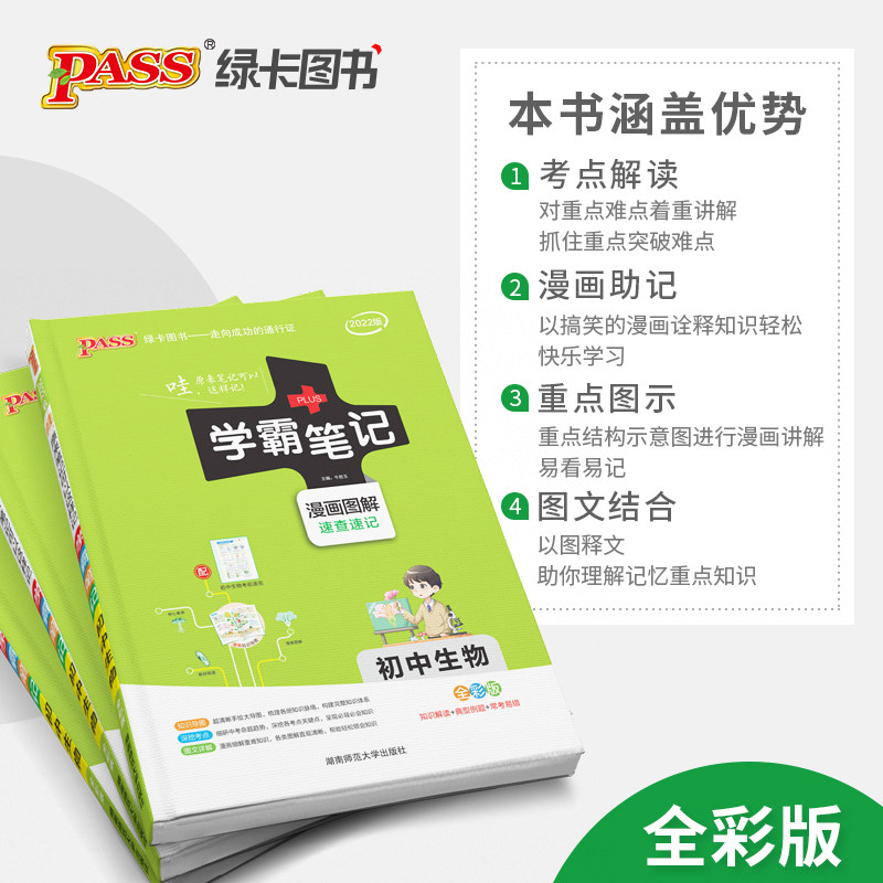 (Official store) 2023 version of PASS Green Card Xueba Notes Junior High School Biology Human Education Edition Middle School Teaching Auxiliary Junior High School Secondary Junior Three Synchronous Comic Illustration