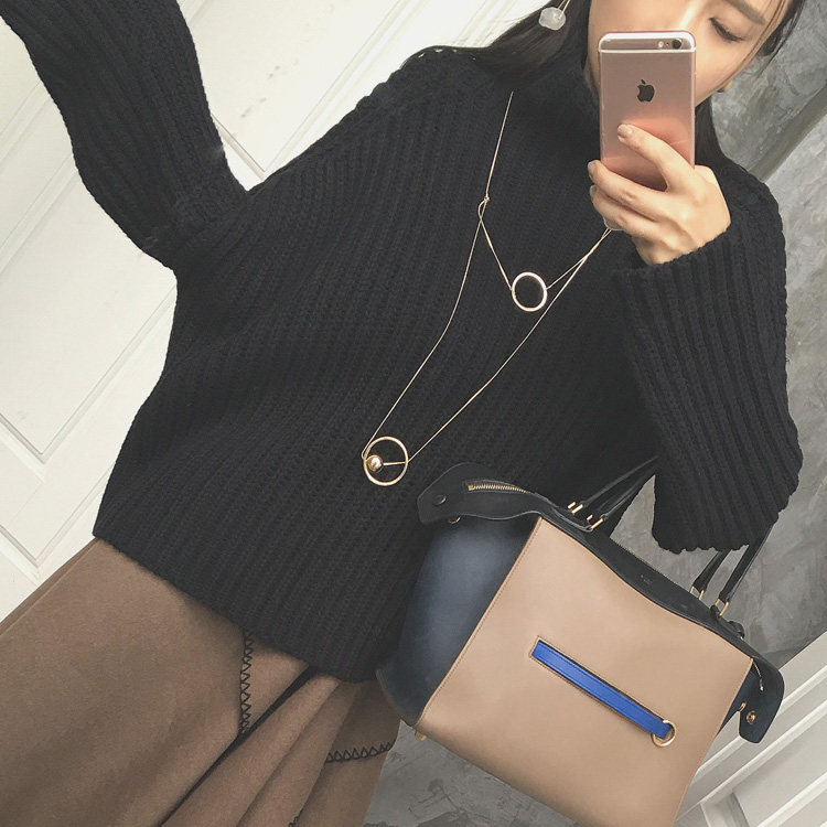 (LAMOBO exclusive) Australian imports thickened wool coarse rod needle high collar bat sleeve sweater