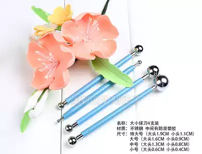 Facial plastic turning sugar soft pottery plastic clay flower shaping tool stainless steel kneader knife ball knife side roller flower stick ball stick