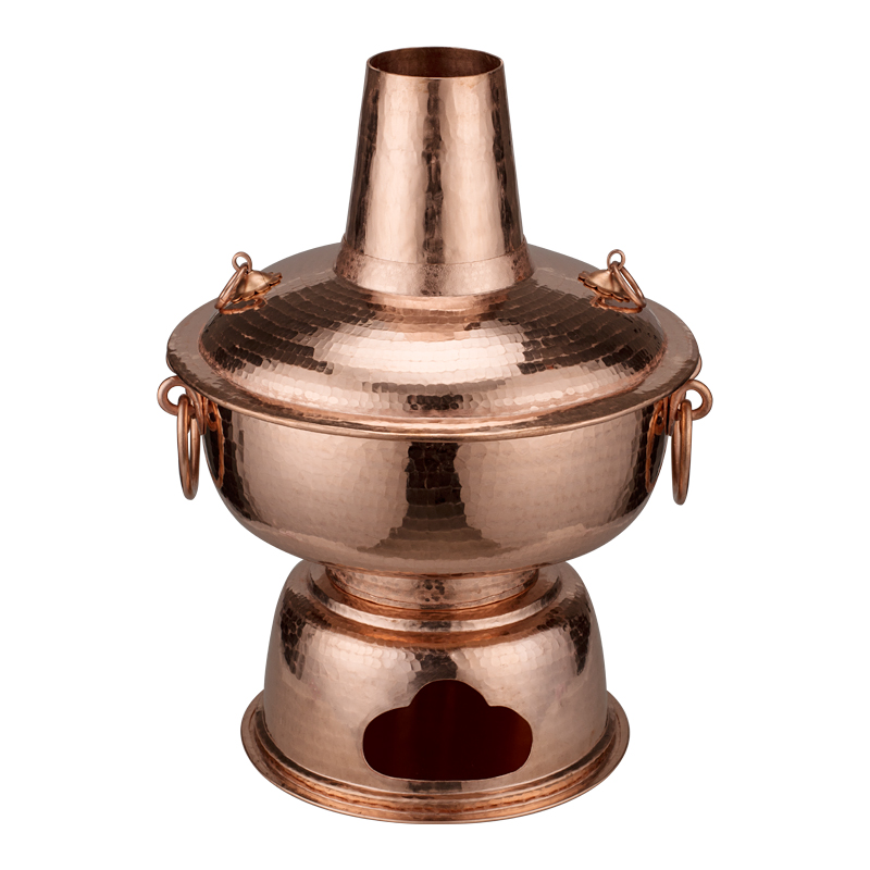 Diandu pure copper hot pot Chinese style with high wood charcoal thick household dining room copper soup boiler uncoated red copper electric hot pot