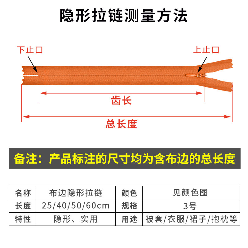 Invisible zipper zipper accessories 20cm black white hidden accessories Long version of clothes skirt pillow diy dark chain