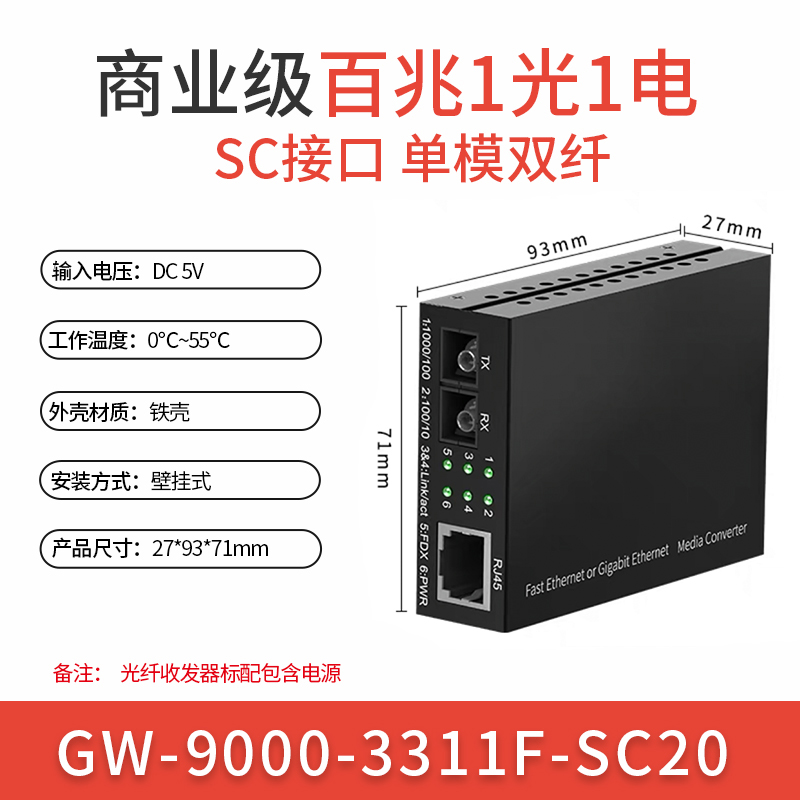 Sensory Fiber Transceiver one thousand trillion transnetwork route connector SC one light four-electric single-mode monitoring extender photocat converter pair of multimode dual-mode dual-fiber rack
