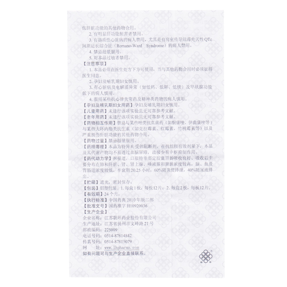 Terfenadine tablets