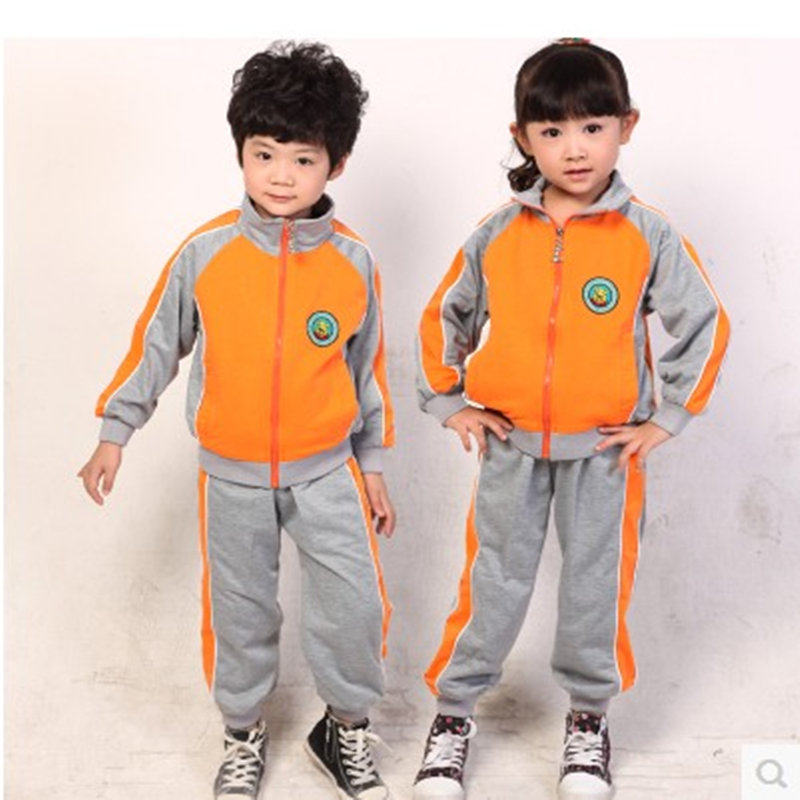 Kindergarten uniform primary school uniform spring autumn winter orange orange gray splicing 2017 spring and autumn new suit wholesale