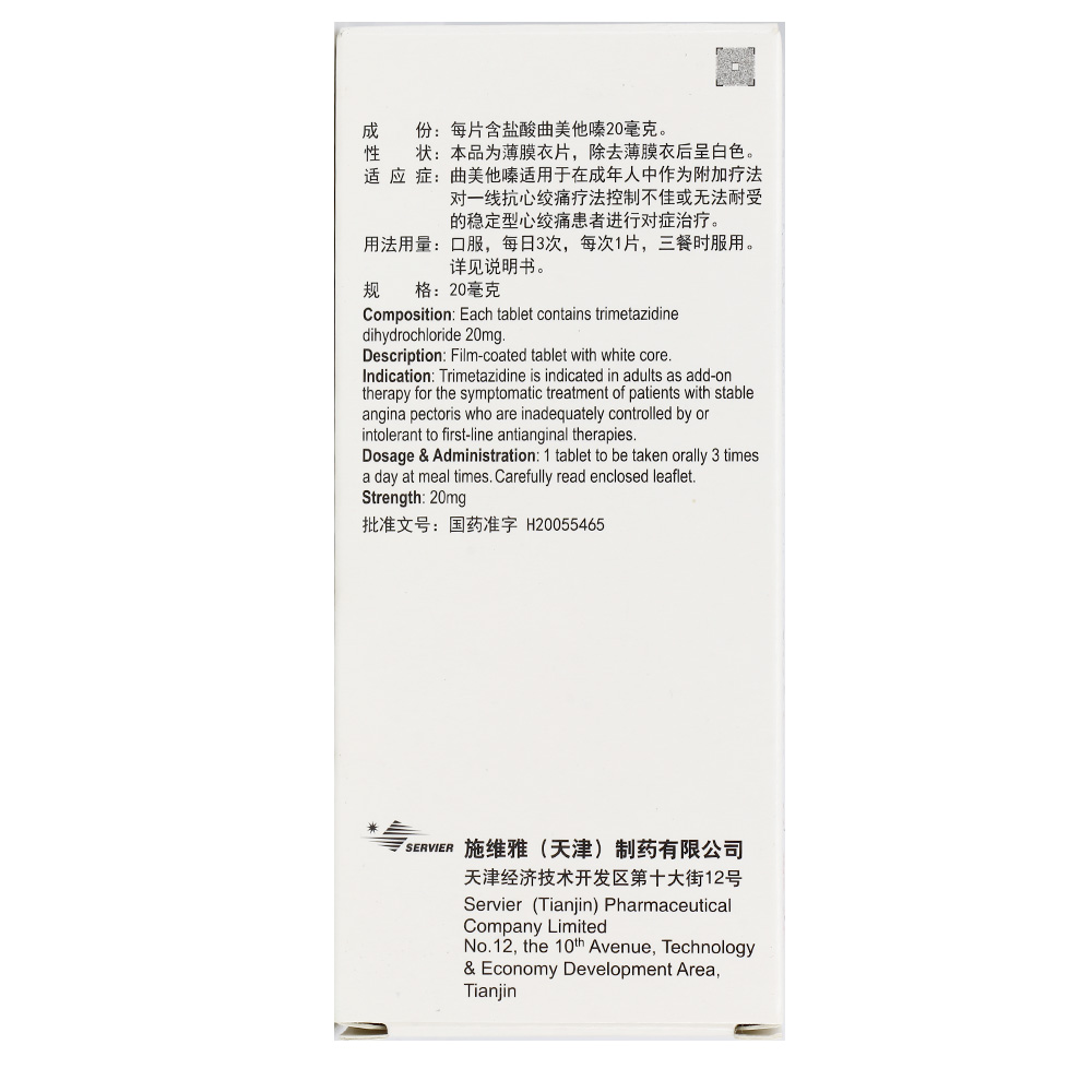 (As low as 30 yuan for a box, 6 boxes are recommended) Wanshuangli Wanshuangli Trimetazidine Hydrochloride Tablets 20mg*30 Tablets Box Angina Stable Tianjin Servier
