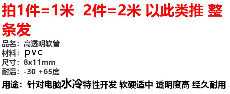 Water cooling hose 8x11mm high overdraft high play imported material Desktop water pipe refrigeration sheet pipe water pump pipe cold drain pipe