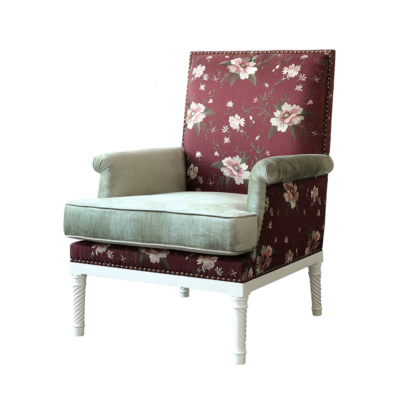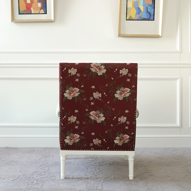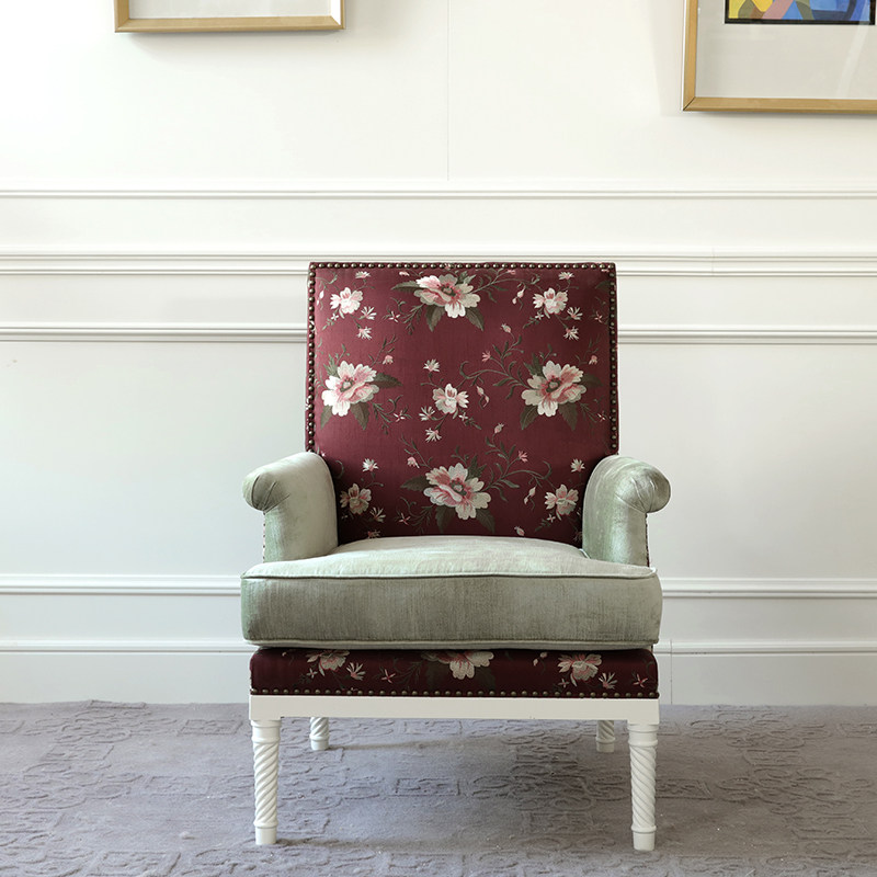 New Chinese single sofa Sofa Chair Rose Embroidery Creative Solid Wood Cloth Art Soft Bag Book Room Single Sofa Computer Chair