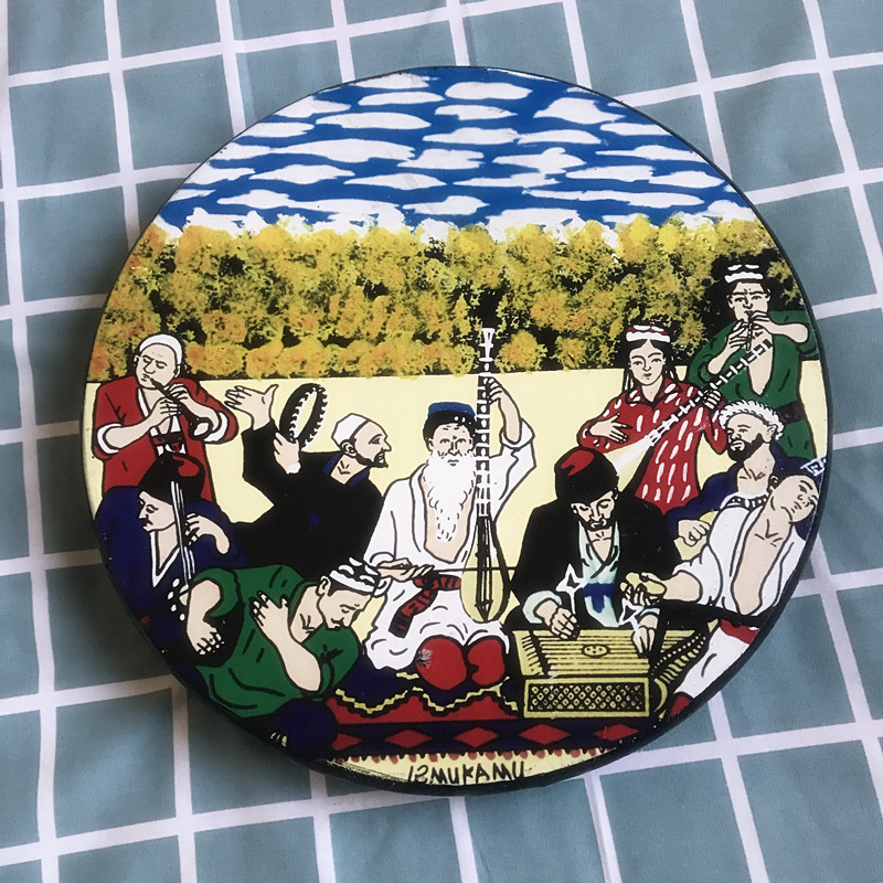 Xinjiang Uygur Ethnic Artisanal Musical Instrument Color Plotter Hand Drum Song Stage Decoration Dance Performance Props 20 cm