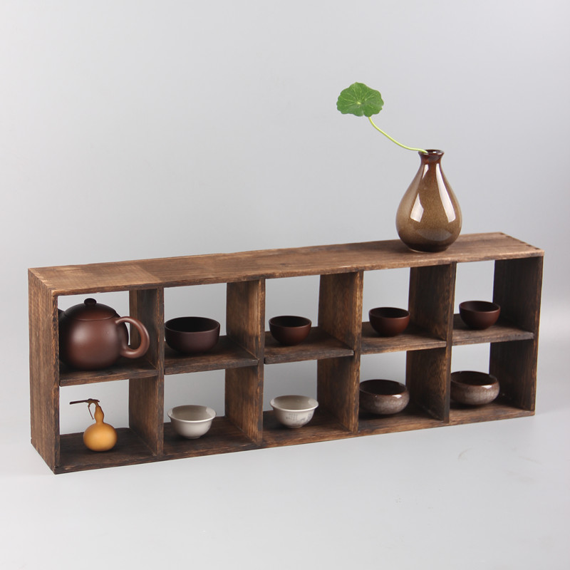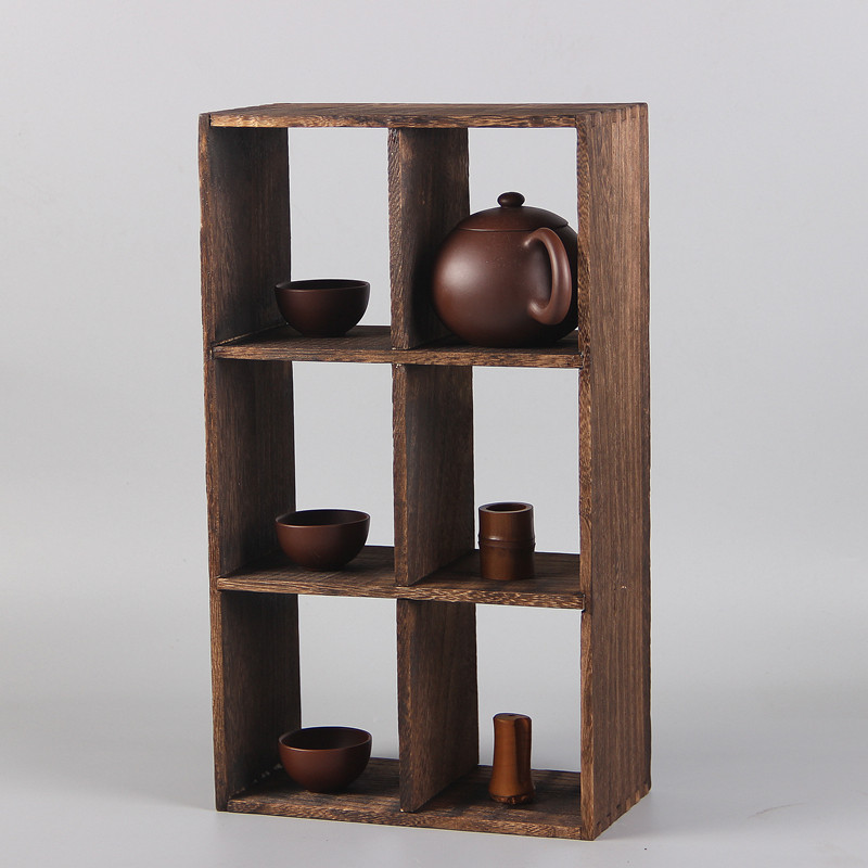 Burned Tung wood teacup rack Tea set storage cabinet Teapot rack Old multi-treasure solid wood small Bogu shelf storage