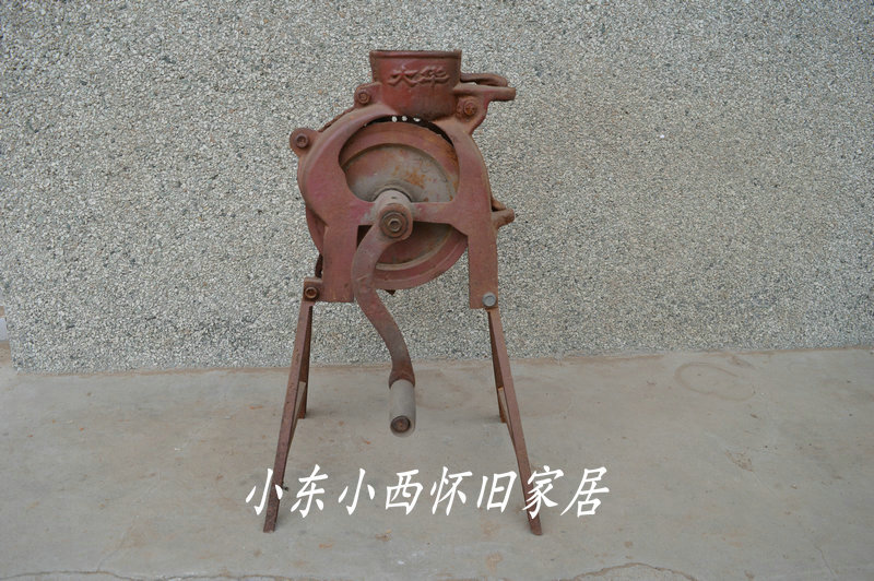 Folklore nostalgic old agricultural tools Hand crank vintage threshing machine old objects manual corn machine Folklore old object collection