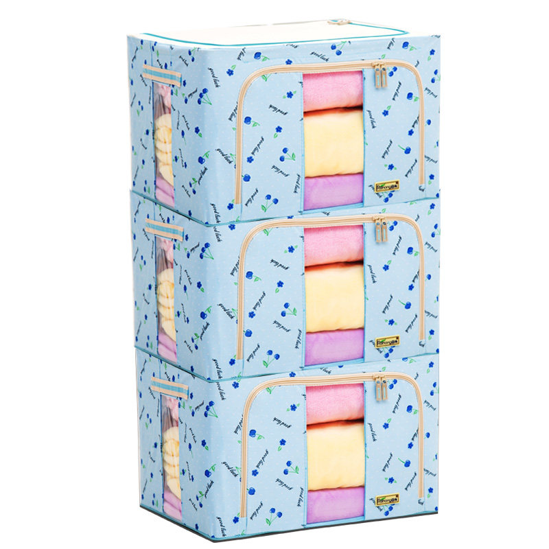 Rishang Oxford cloth steel frame box 100 liters 3-pack storage box Storage box double doors and double windows