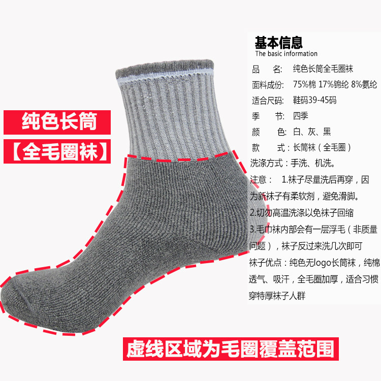 Thickened socks mid-tube men's socks towel bottom sports socks cotton mid-line cotton terry sweat-absorbing shock absorption