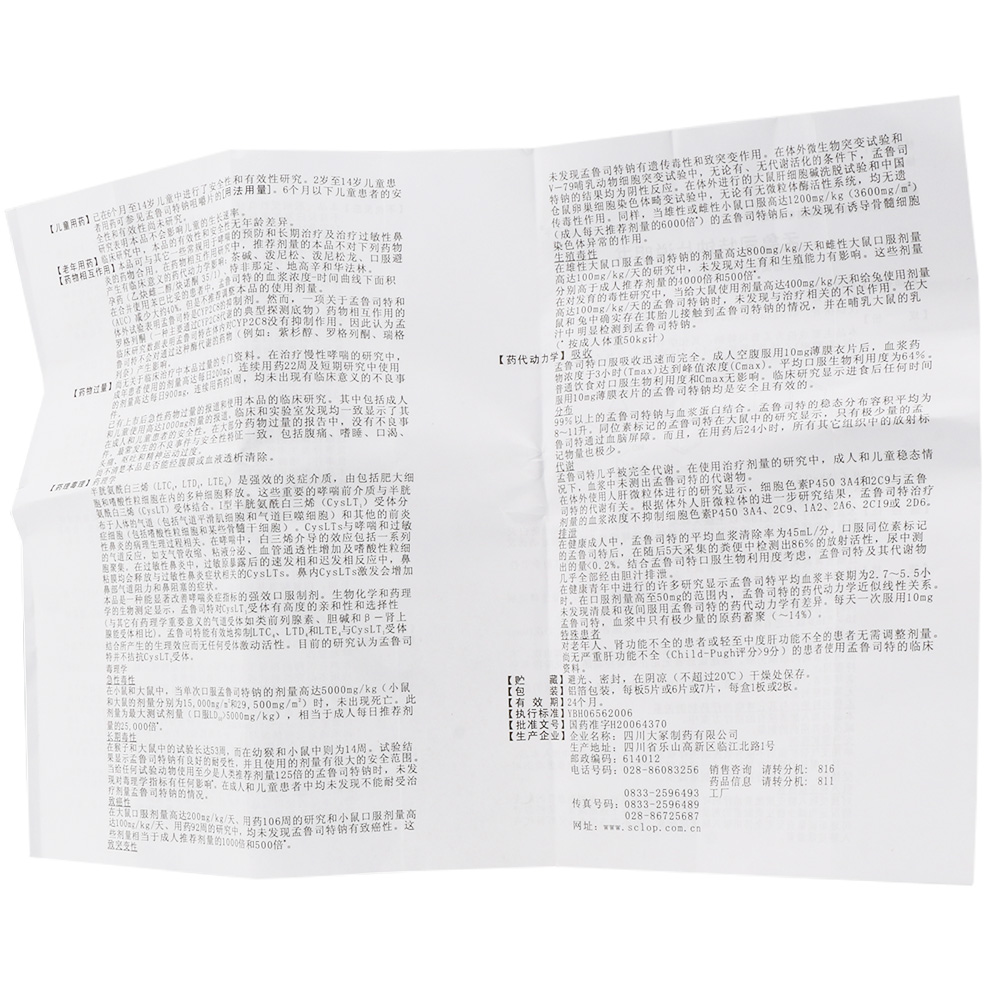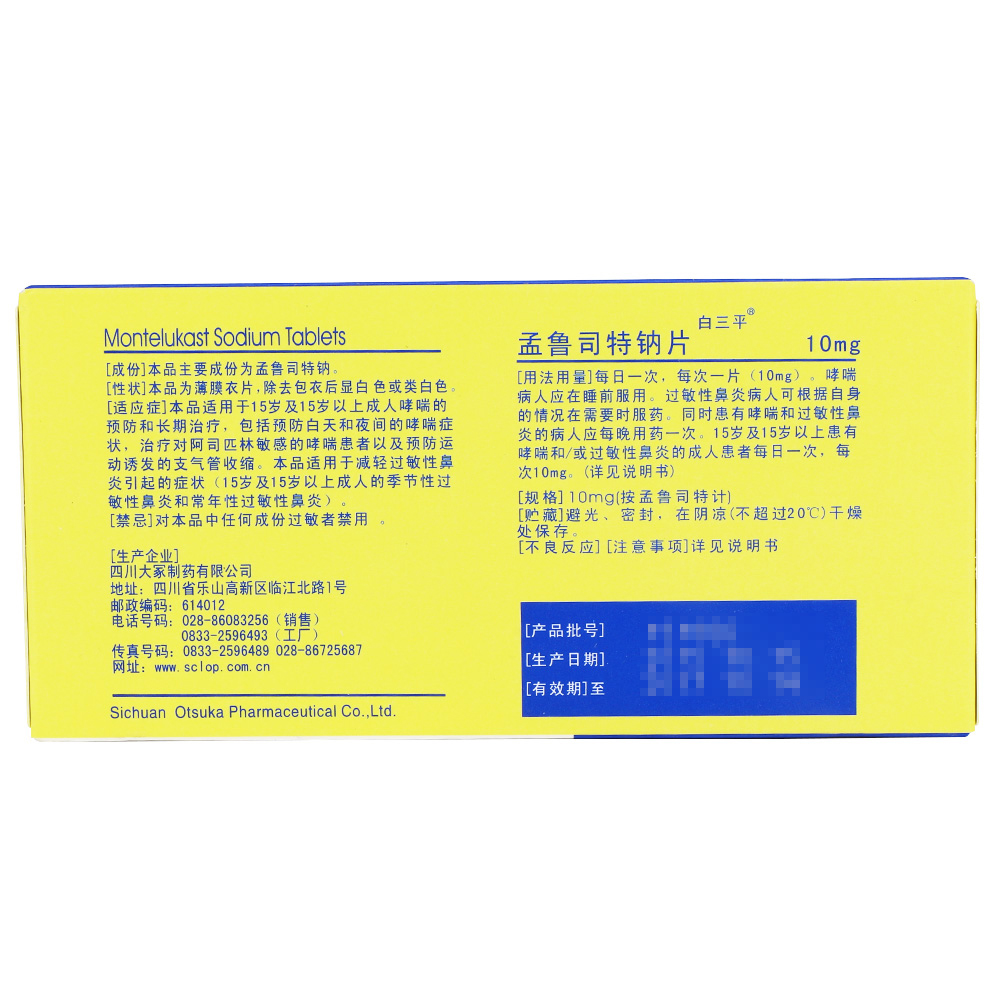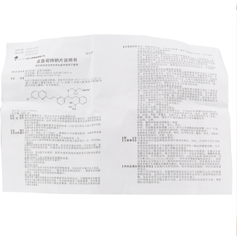 White Tripine Munrouster sodium sheet 10mg * 5 sheet boxes Prevention and treatment of adult asthma Changannual Seasonal Allergic Rhinitis