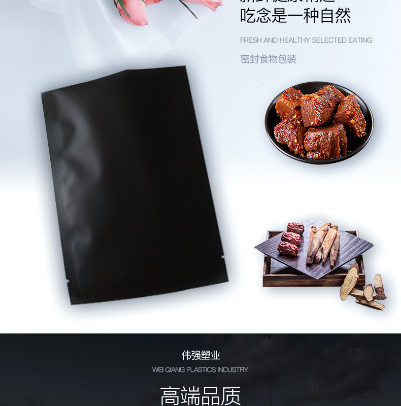Thickened black aluminum foil bag Mask packing bag Black matt aluminum bag Flat pocket Black matte blind bag