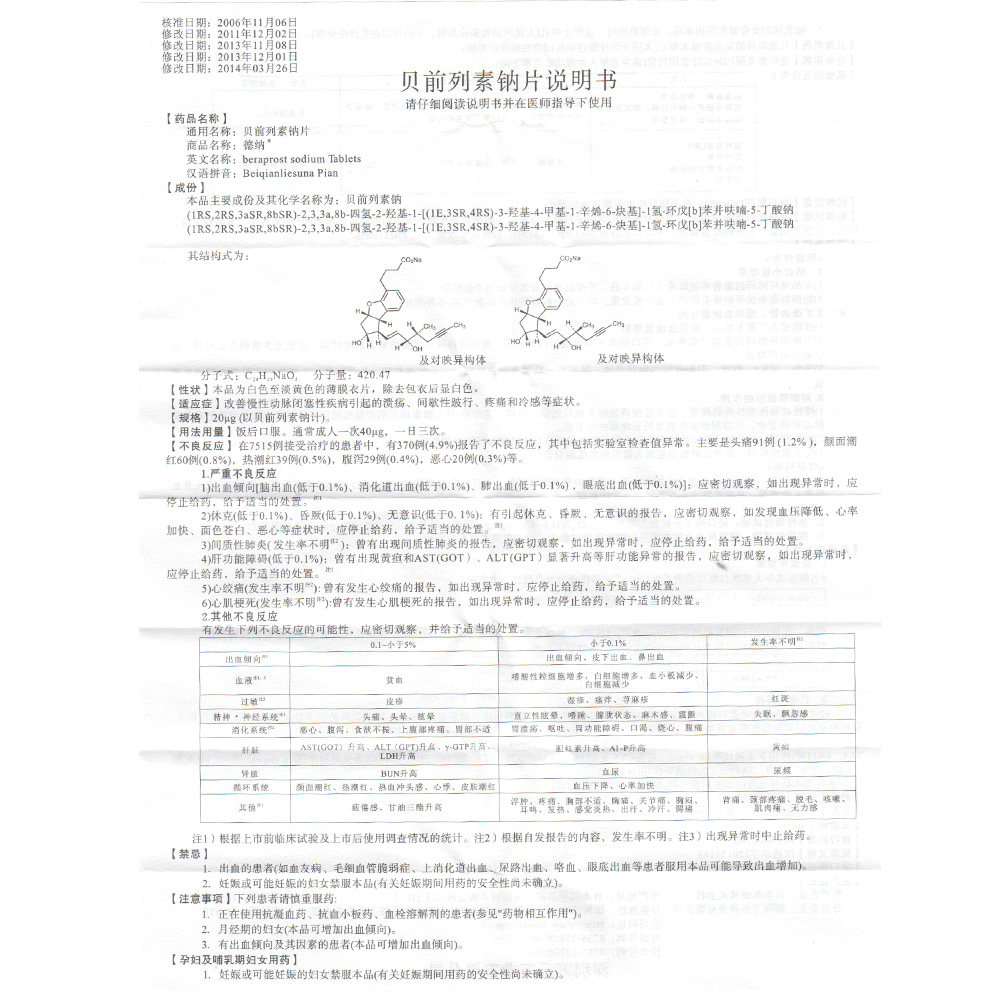 Dana Dena Beprost Sodium Tablets 20 μg*10 Tablets Box Arterial Occlusion Ulcer Pain Cold Feeling