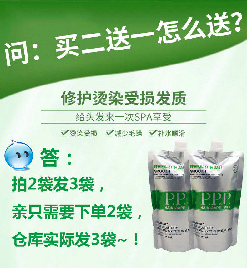 PPP hair cream (buy 2 get 1 free) PPT hair mask (green) perming repair (1 bag) PPT hair mask (yellow) dry repair (1 bag) Sophie hair mask (full effect repair) (1 bag)