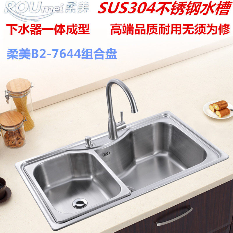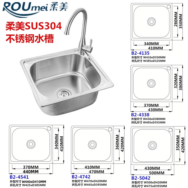 Soft Beauty 304 Stainless Steel Kitchen Single Tank Single Basin Sink Large Dishwashing Vegetable Basin Handwash Basin Handmade Integral Forming-Taobao